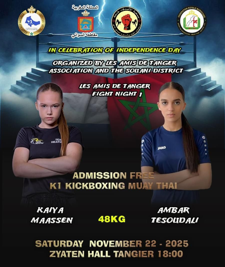 تستعد مدينة طنجة لاحتضان نزال رياضي واعد يجمع بين البطلتين المغربية عنبر تسودالي والهولندية كيا ماسان، وذلك يوم السبت 22 نونبر 2025 في وزن 48 كلغ، بالقاعة المغطاة الزياتن، ابتداء من السادسة مساء.