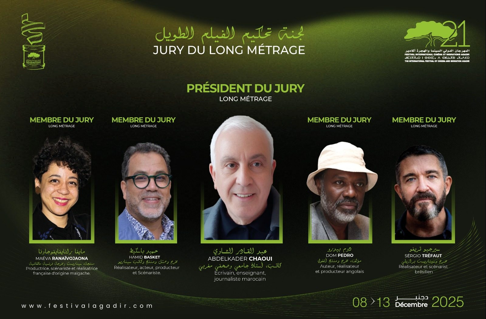 أعلنت جمعية “المبادرة الثقافية” المنظمة للمهرجان الدولي للسينما والهجرة بأكادير المنعقد من 8 إلى 13 دجنبر 2025، عن تشكيلة لجنة تحكيم مسابقة الأفلام الطويلة التي يرأسها الروائي والدبلوماسي المغربي عبد القادر الشاوي. فيما تضم في عضويتها كلا من المخرج وكاتب السيناريو الأنغولي دوم بيدرو ، والممثل والمخرج والمنتج وكاتب السيناريو حميد باسكيط والمخرجة والمنتجة (مدغشقر) مايفا رانايڤوجاونا، إلى جانب المخرج والمنتج وكاتب السيناريو البرازيلي سيرجيو تريفاوت.
